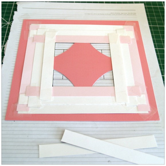 Looks more like a log cabin pattern for patchwork than a traditional Iris Folding pattern but I liked it so I went with it.