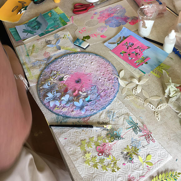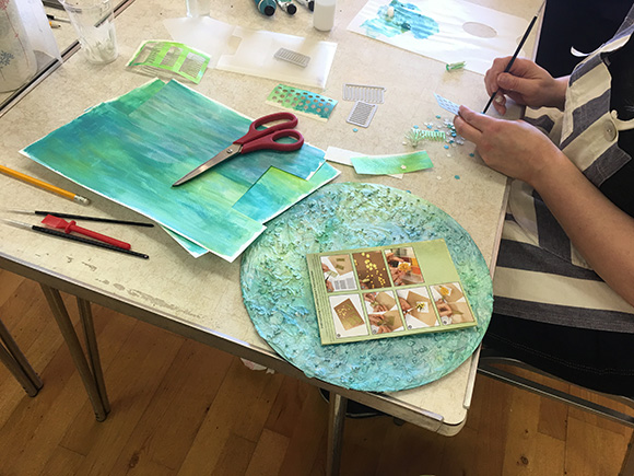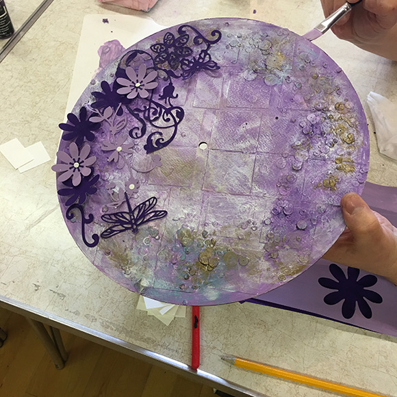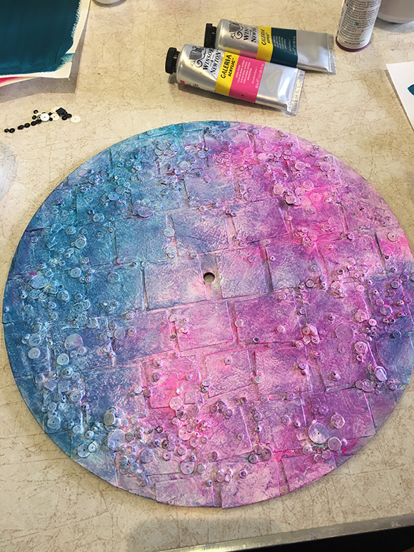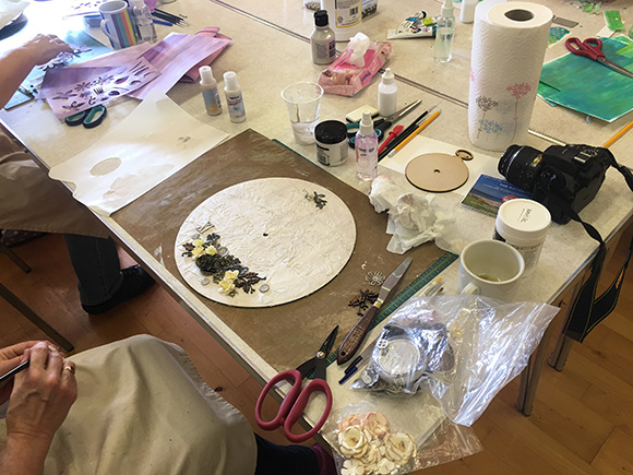 Jennie had suggested that we aim for something mixed media so the project that I had set was to do a mixed media clock face.