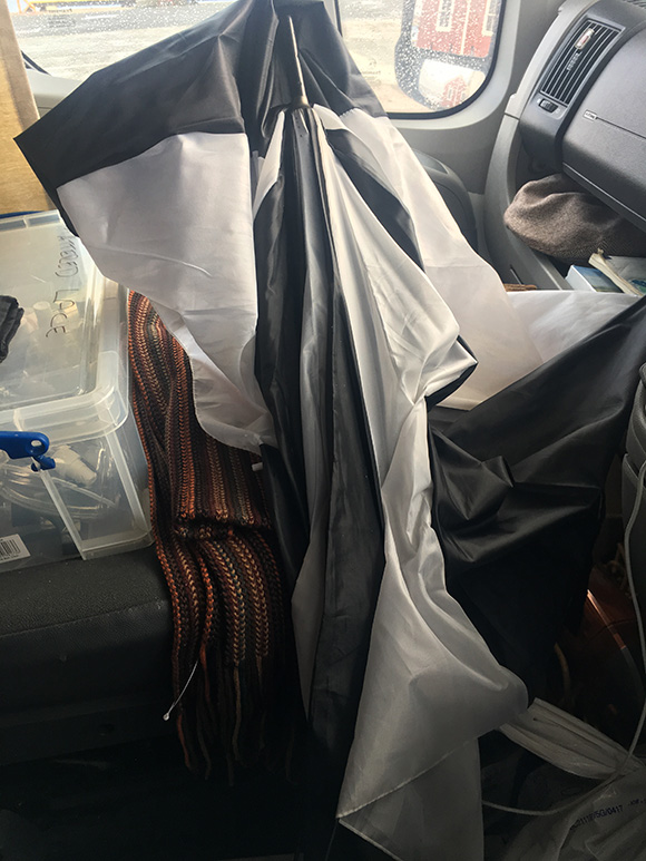 That’ll be because of the wind – umbrellas are just not going to cope, as you can see.