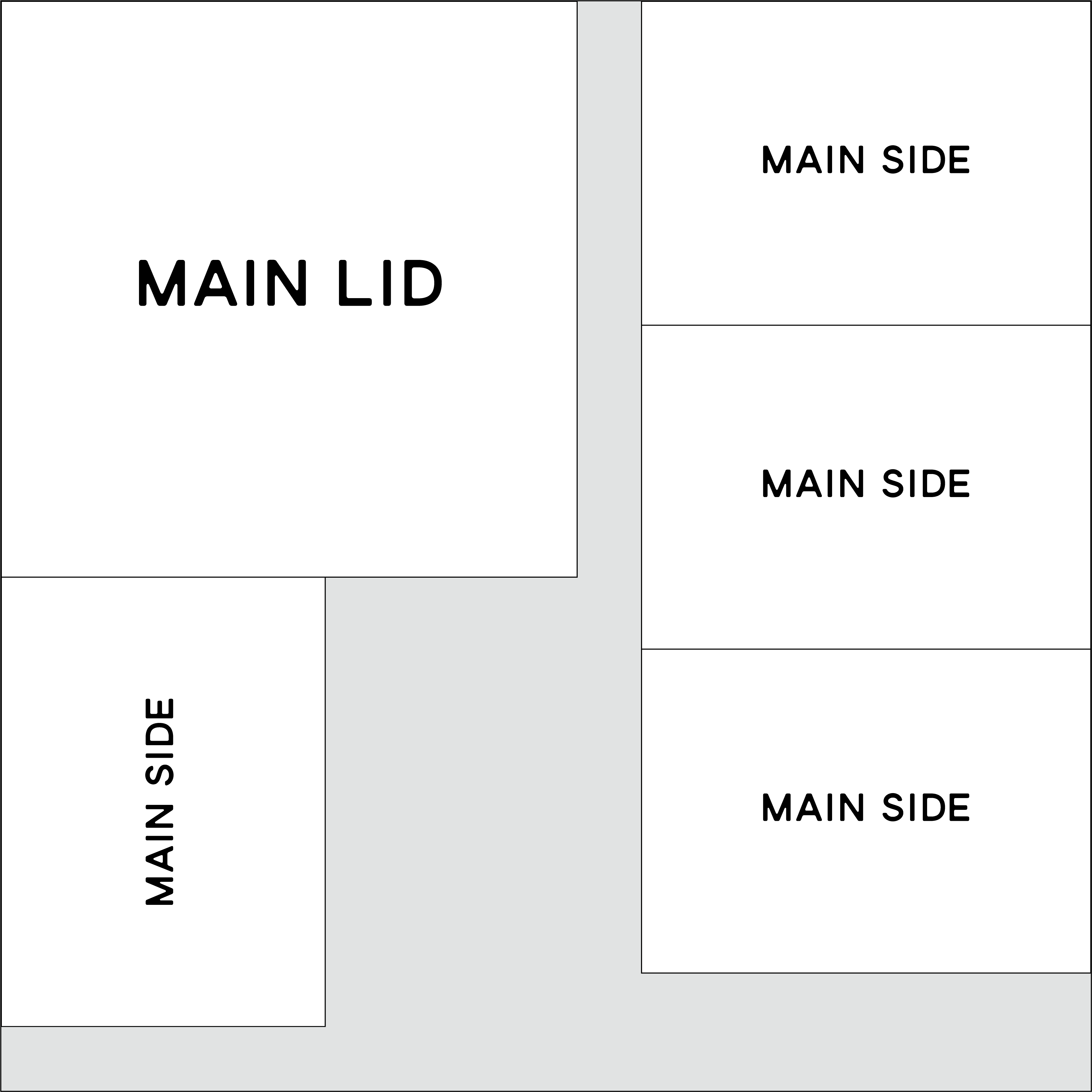 - LIDS – Four 10cm squares.