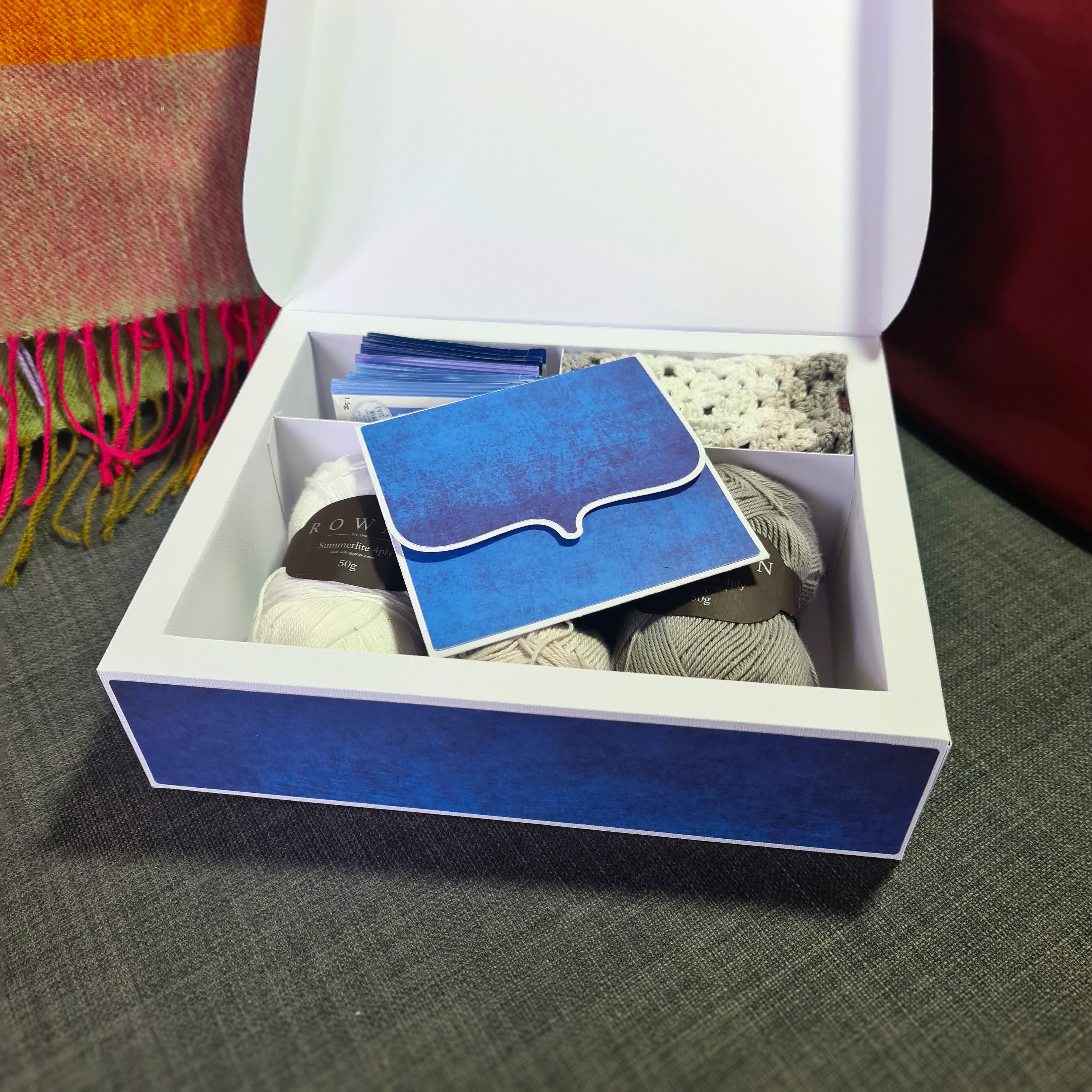 Give gifts in coordinated style and send your choice of delightful treats with this hamper gift box featuring customizable inserts and matching card, envelope and tags!